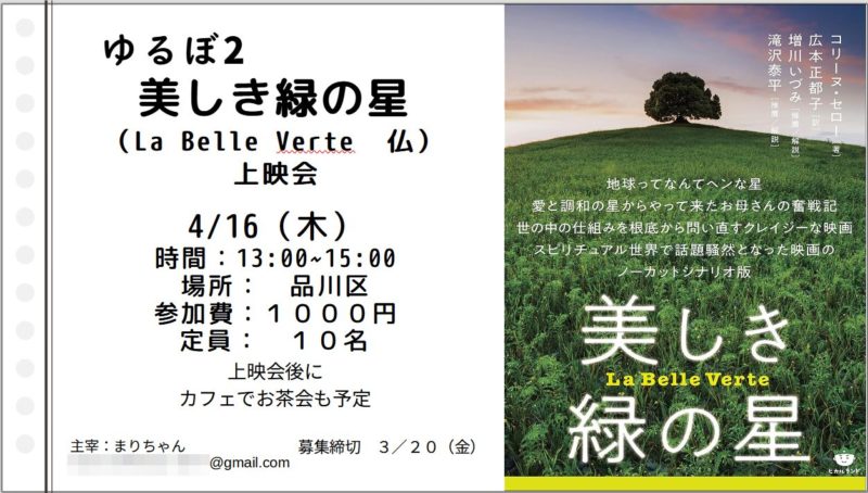そして4/16の午後、「美しき緑の星」映画鑑賞会をします。