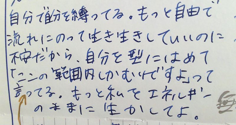 114 エネルギーのままに生かして ノートからのメッセージ 2026.03.10 自分で自分を縛ってる もっと自由で流れにのって生き生きしていいのに 不安だから自分を型にはめて「ここの範囲内しかむりですよ」って言ってる もっと私をエネルギーのままに生かしてよ